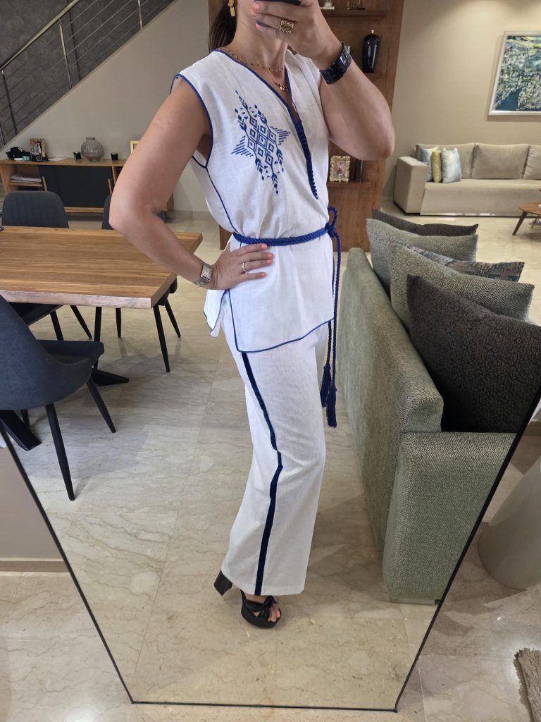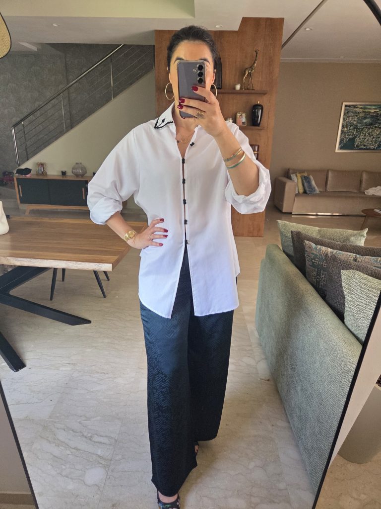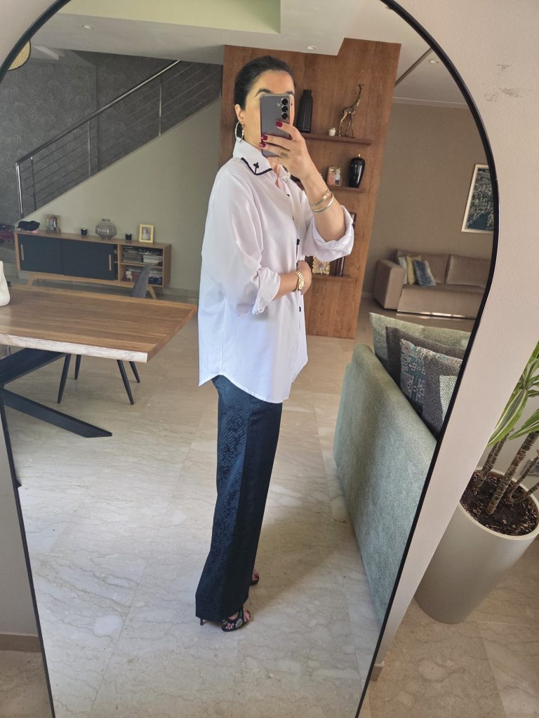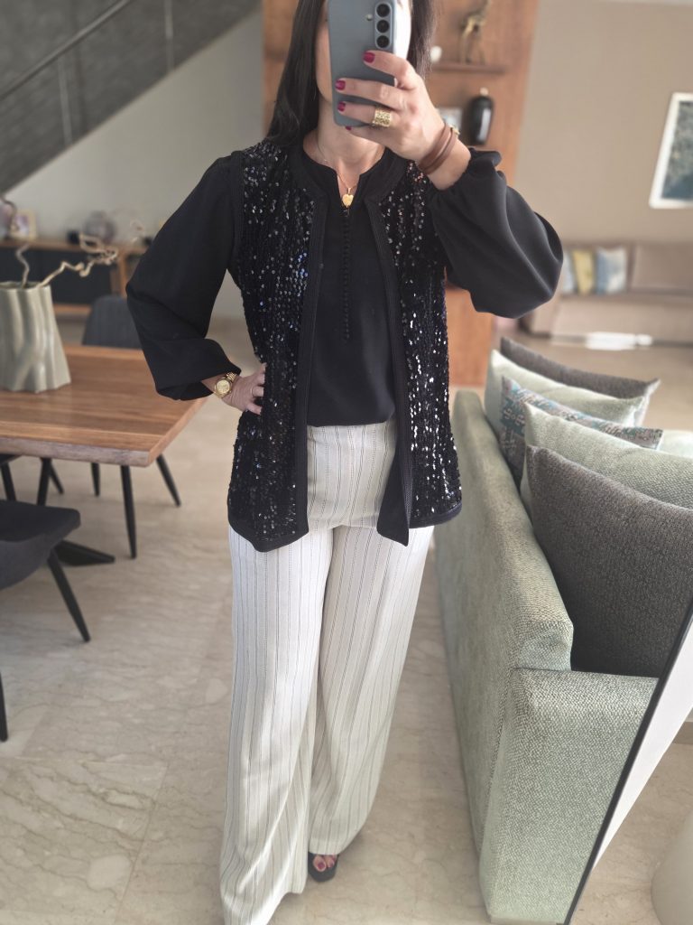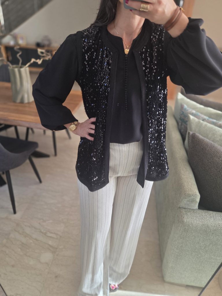 Ensemble 3 pièces pantalon kandressa et jabador a sequin et tunique en crêpe de soie