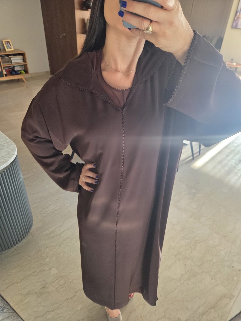 Jellaba 2 pièces 100% handmade – crêpe de soie & mousseline marron chocolat