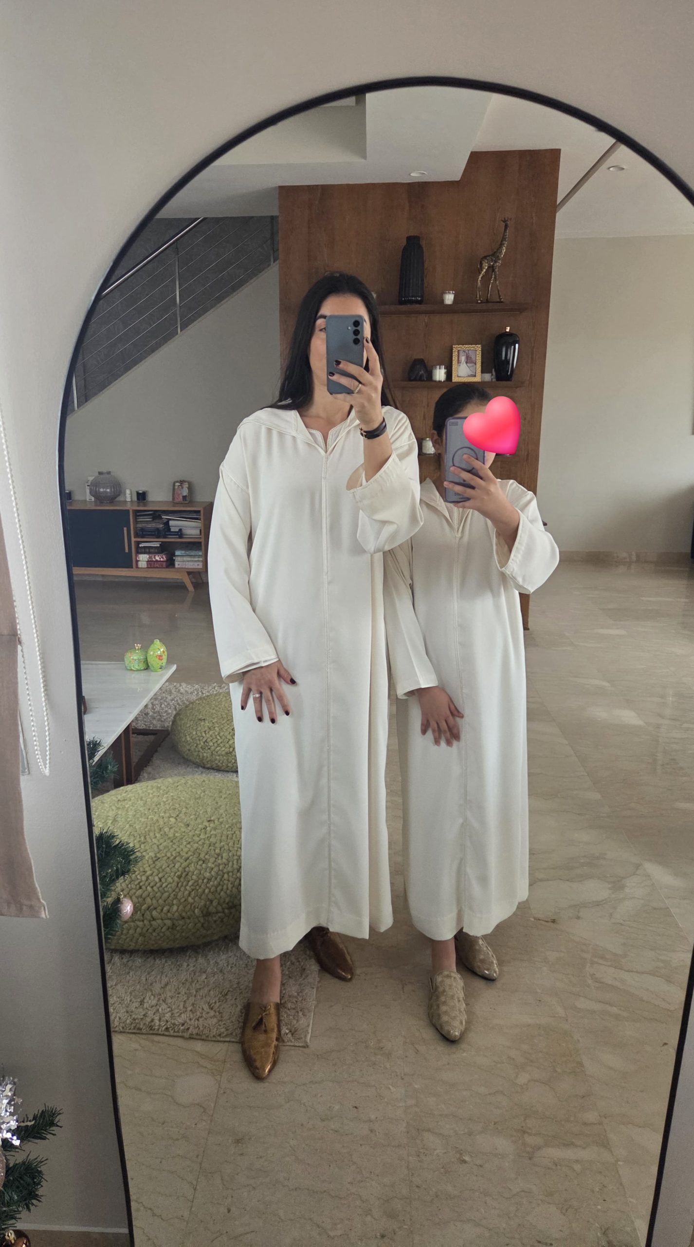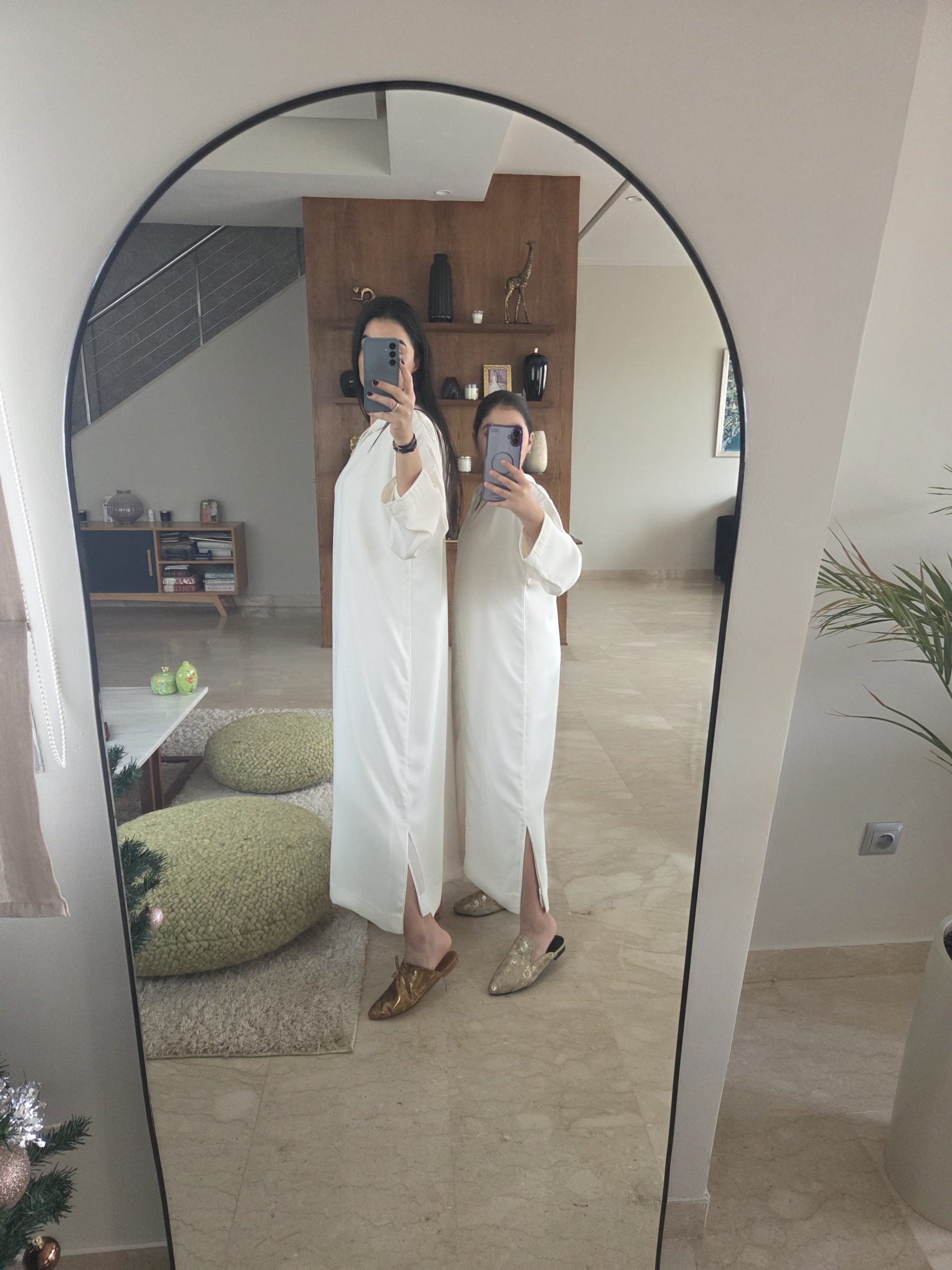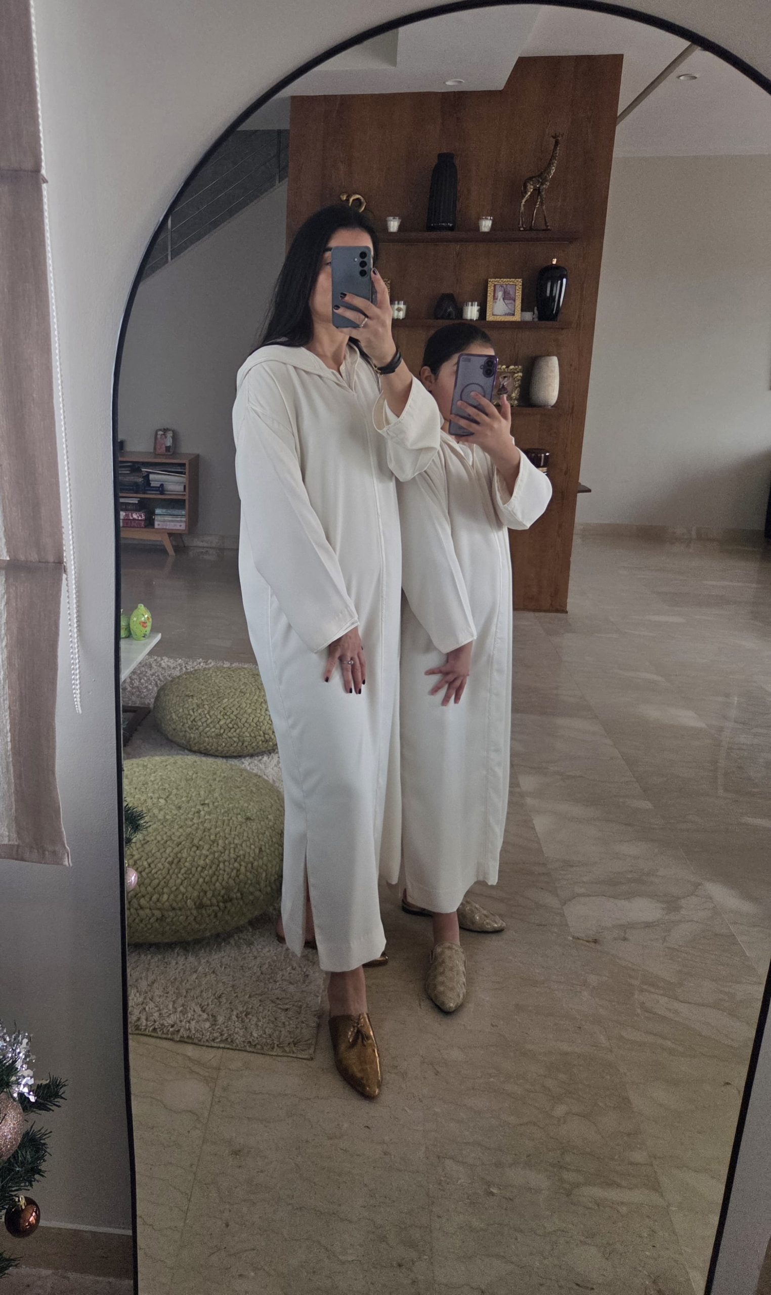 Nom du produit : Jellaba matchy matchy blanc cassé en crêpe de soie et mousseline